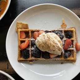 Super cute restaurant. Came with a very large party. No room for us inside (it's rather small) but they pushed tables together brought extra chairs and we set up outside. The food and coffee were off the hook! Service was impeccable.